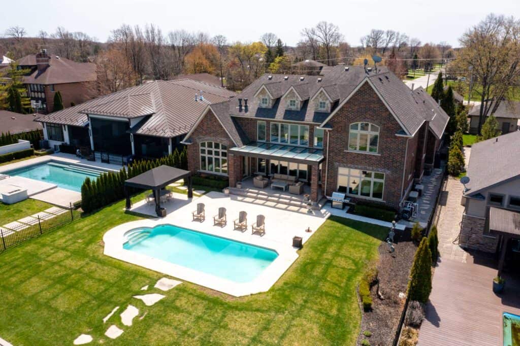 A lovely winding driveway leads to the stunning waterfront property on Elmgrove Drive. The outside of the home is complemented by the sweeping elegance of the landscaped front lawn and magnificent brick exterior. The backyard not only features a lovely in-ground pool but also a dock overlooking the water, truly making it a complete luxury property nestled in a prestigious location.